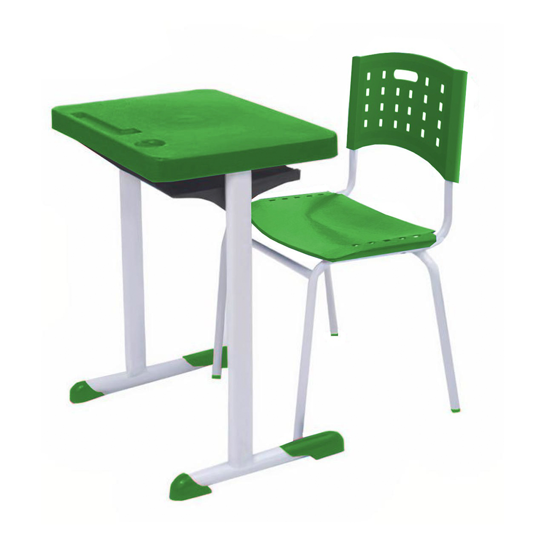 Cadeiras e mesas com design ergonômico que garantem bem-estar e foco dos alunos durante todo o período escolar.